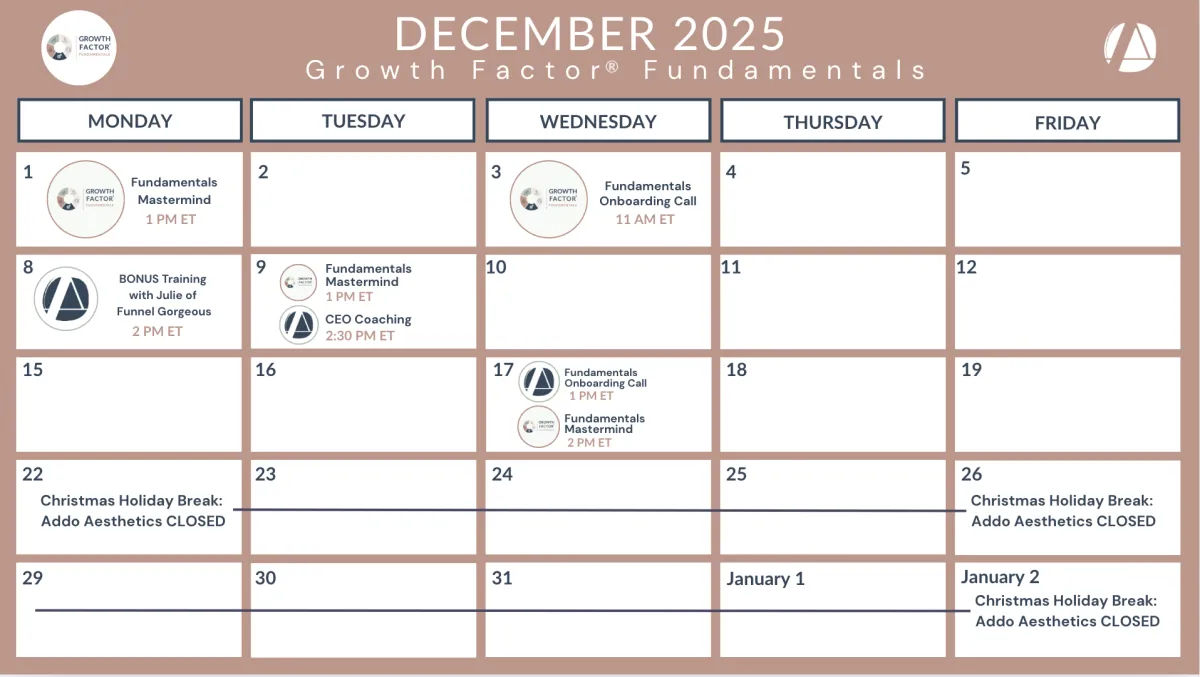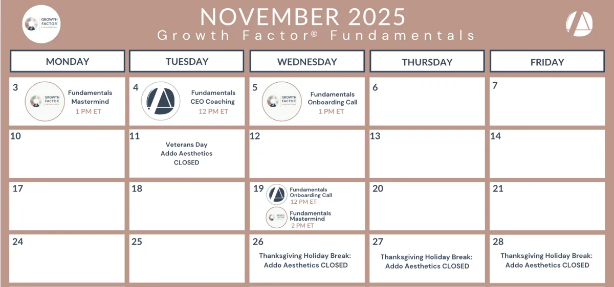 Growth Factor® Fundamentals is that roadmap. It’s the sisterhood, the strategy, and the structure Daniela wishes she had when she was building Addo Aesthetics.